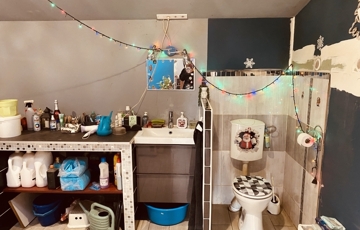 Befejezésre váró részletek: A fél szoba falai és aljzata már csak festésre és burkolásra várnak – itt saját ízlése szerint dönthet a színekről. A ház külső felújítása pedig az új tulajdonos kreativitására van bízva, hogy valóban álmai otthonát alkothassa meg.